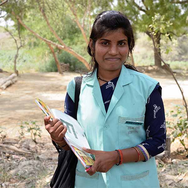 CHWs organize screening camps in centrally located villages. At these outreach camps, staff from our partner hospitals re-examine those who were identified with eye conditions during the door-to-door survey